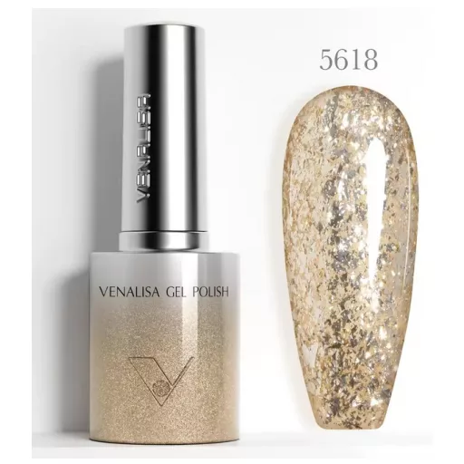 Venalisa Gel Polish – Áttetsző Arany Glitter 10 ml-5618