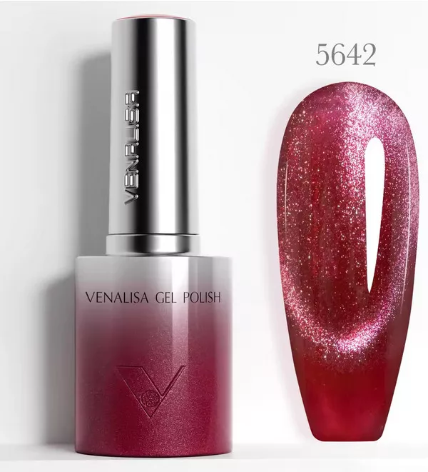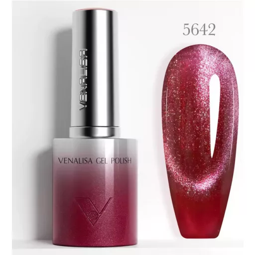 Venalisa Gel Polish – Csillogó Mélyvörös 10 ml-Mágneses-Cat Eye