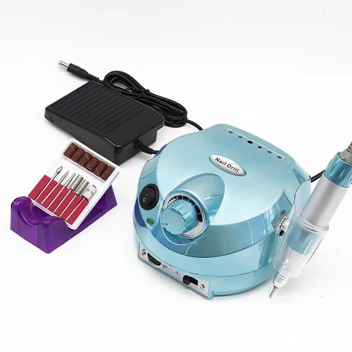 Professzionális Műköröm csiszoló szett – sebességszabályzó pedállal, csiszoló fejekkel. 35000rpm Türkiz Kék-Metál